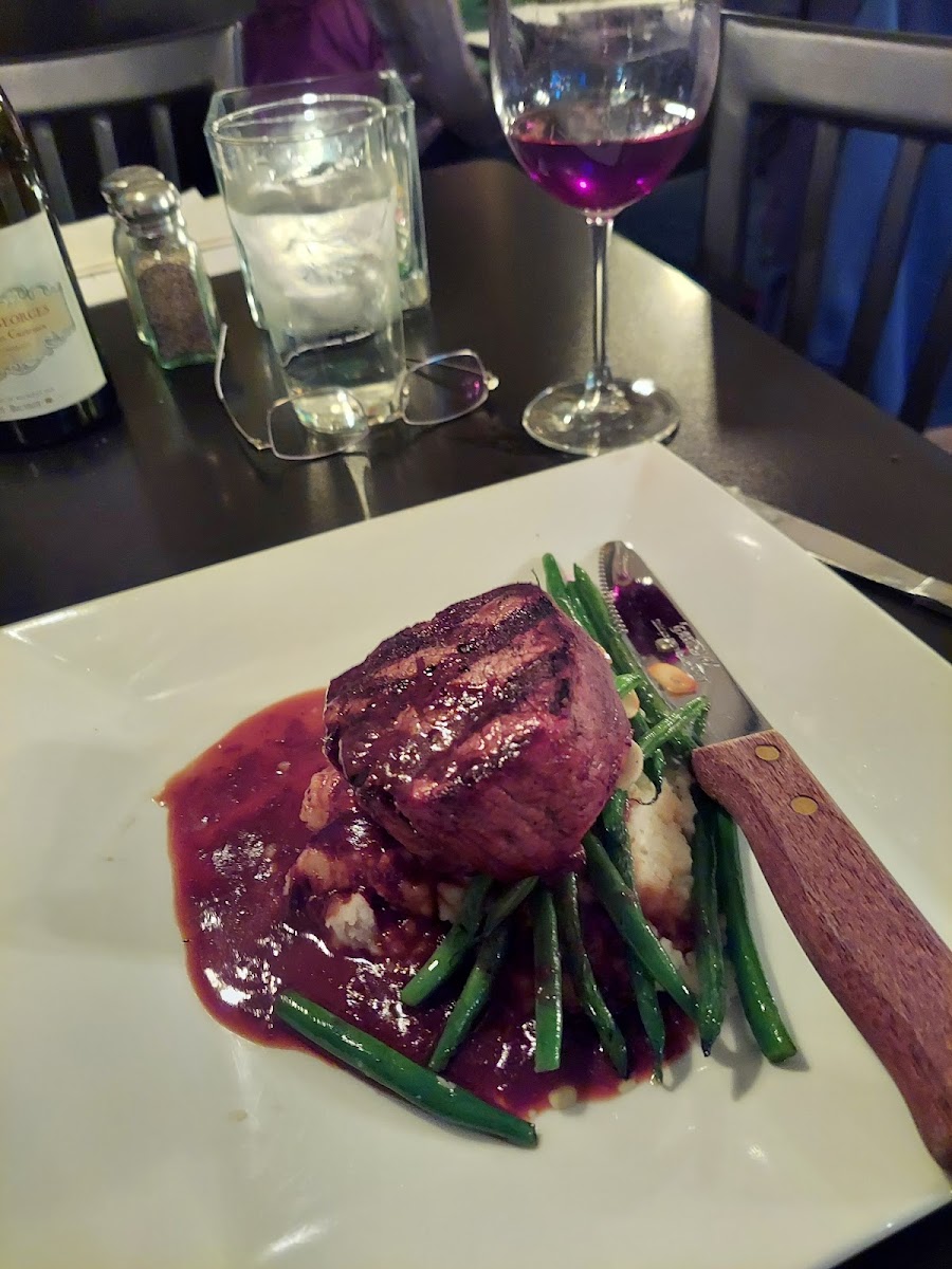 I was in town for work. This place was close to where I was staying, so I decided to give it a try. Delightful place. They have a lovely outdoor patio and the inside, while small, was nice. They have a bar where you can sit, too. (Always good to know when traveling solo). I had made a reservation for 7 just to be safe since it was a Friday night. I didn't need one and decided to sit at the bar. The server was extremely helpful and nice. They change their special menu every day. I ordered from there and it was delish. They have a well stocked bar and the server even recommended a drink I had never heard of after she knew my liquor preference. If you have a chance, just go!! My only regret was not getting dessert.
